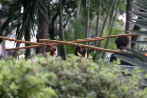 Experimentar a utilização dos bambus como um dispositivo para a desaceleração, equilíbrio e composição. Uma coreografia nômade, múltipla, e engajada em estabelecer itinerários conectivos, percebendo o próprio corpo, compondo com a cidade, com os outros e com tudo aquilo que nos atravessa.